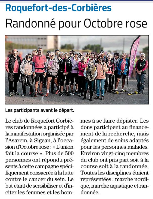 3e édition de l'union fait la course : octobre rose à Sigean. Départ à 10h du terrain des Grazelles